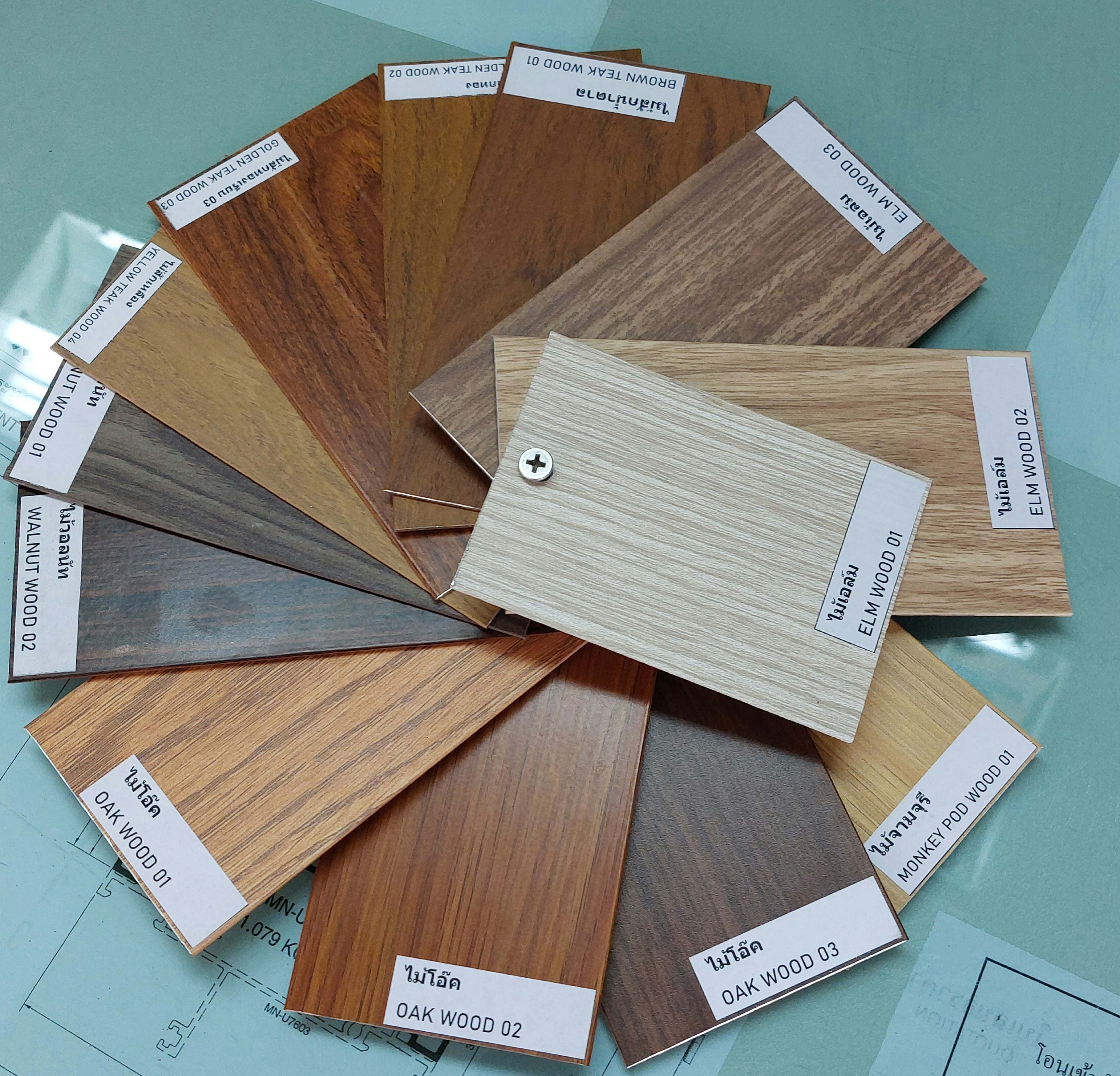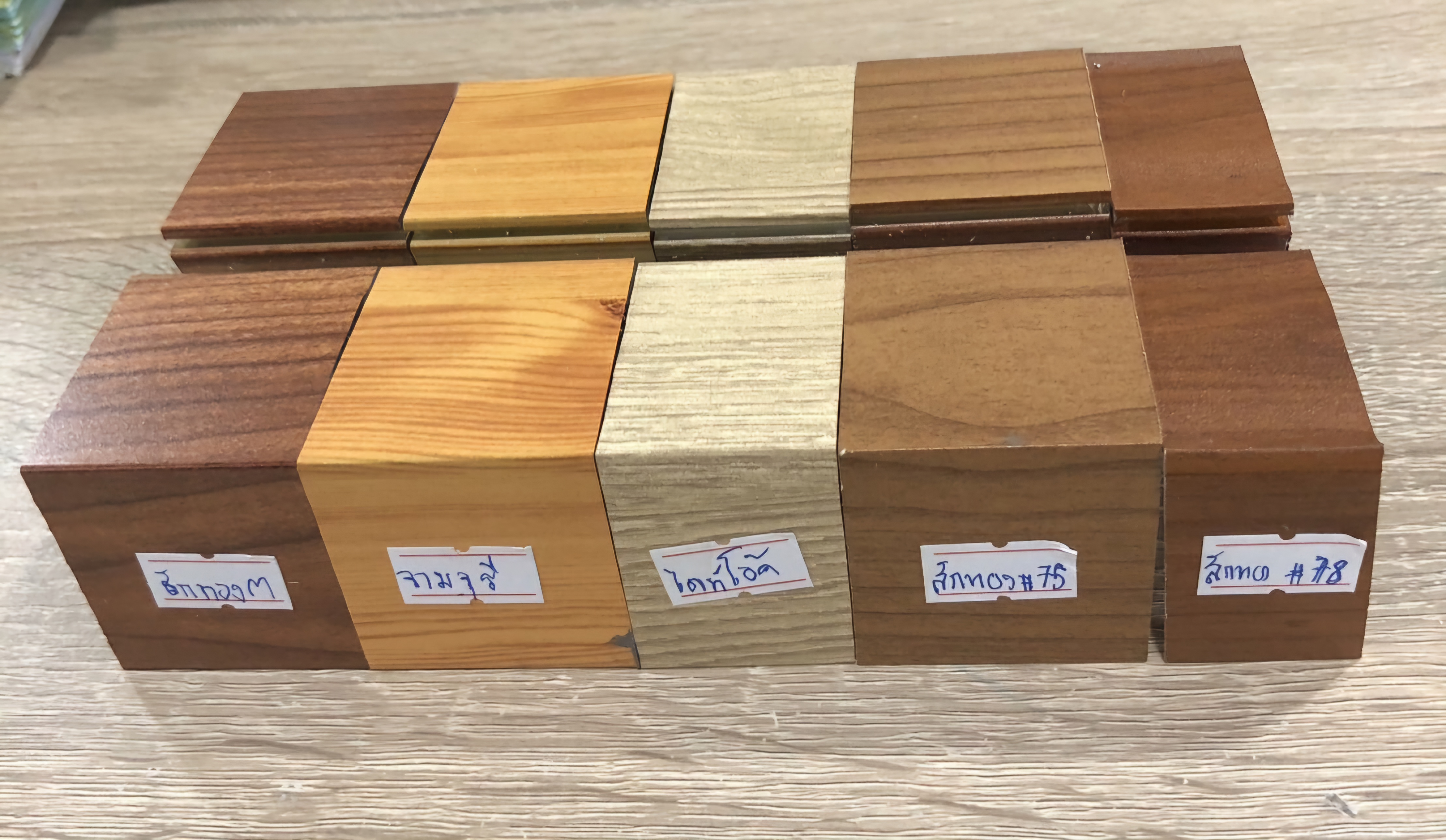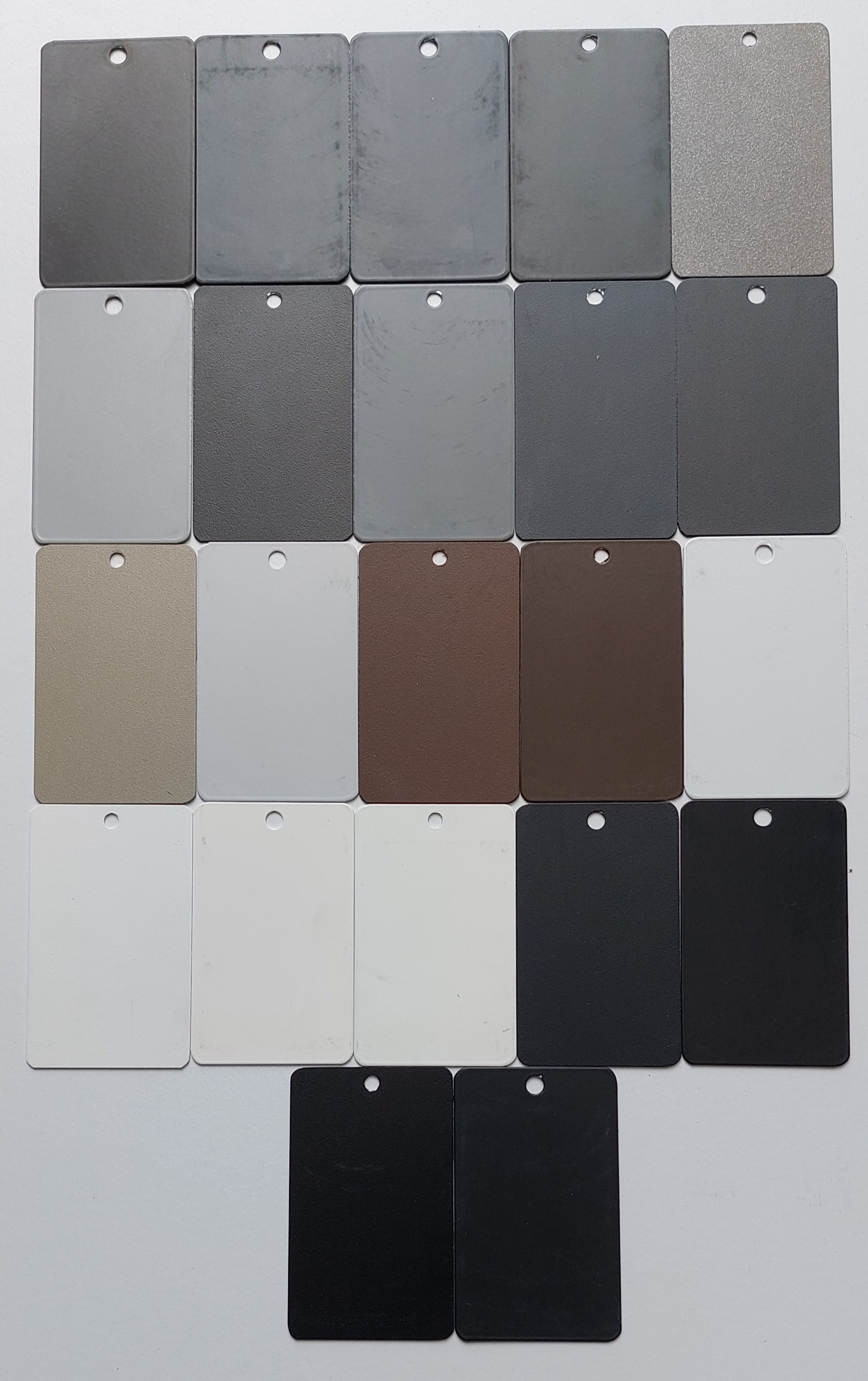 ตัวอย่างสีอลูมิเนียมแบบสีสั่งพ่น พื้นผิวเรียบและแบบผิวซาฮาร่า