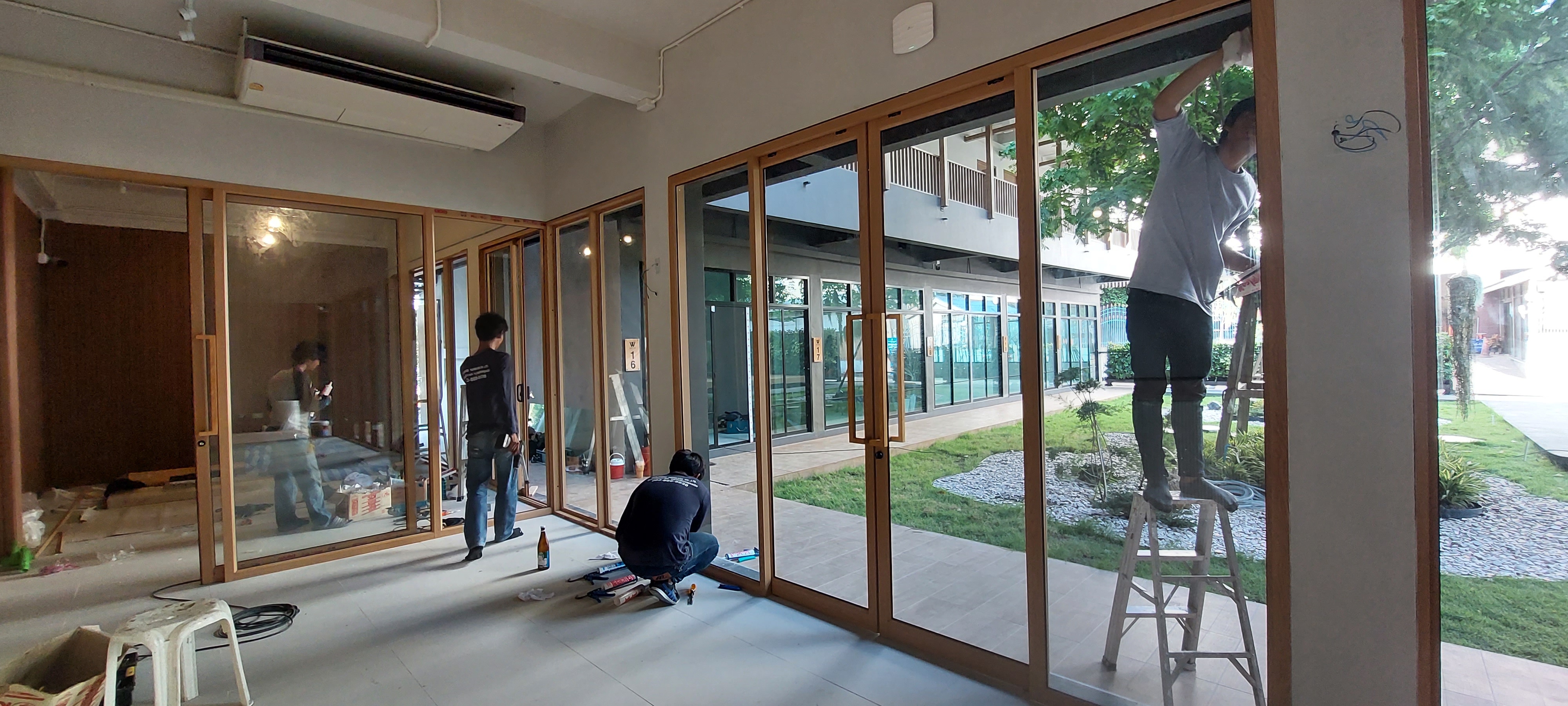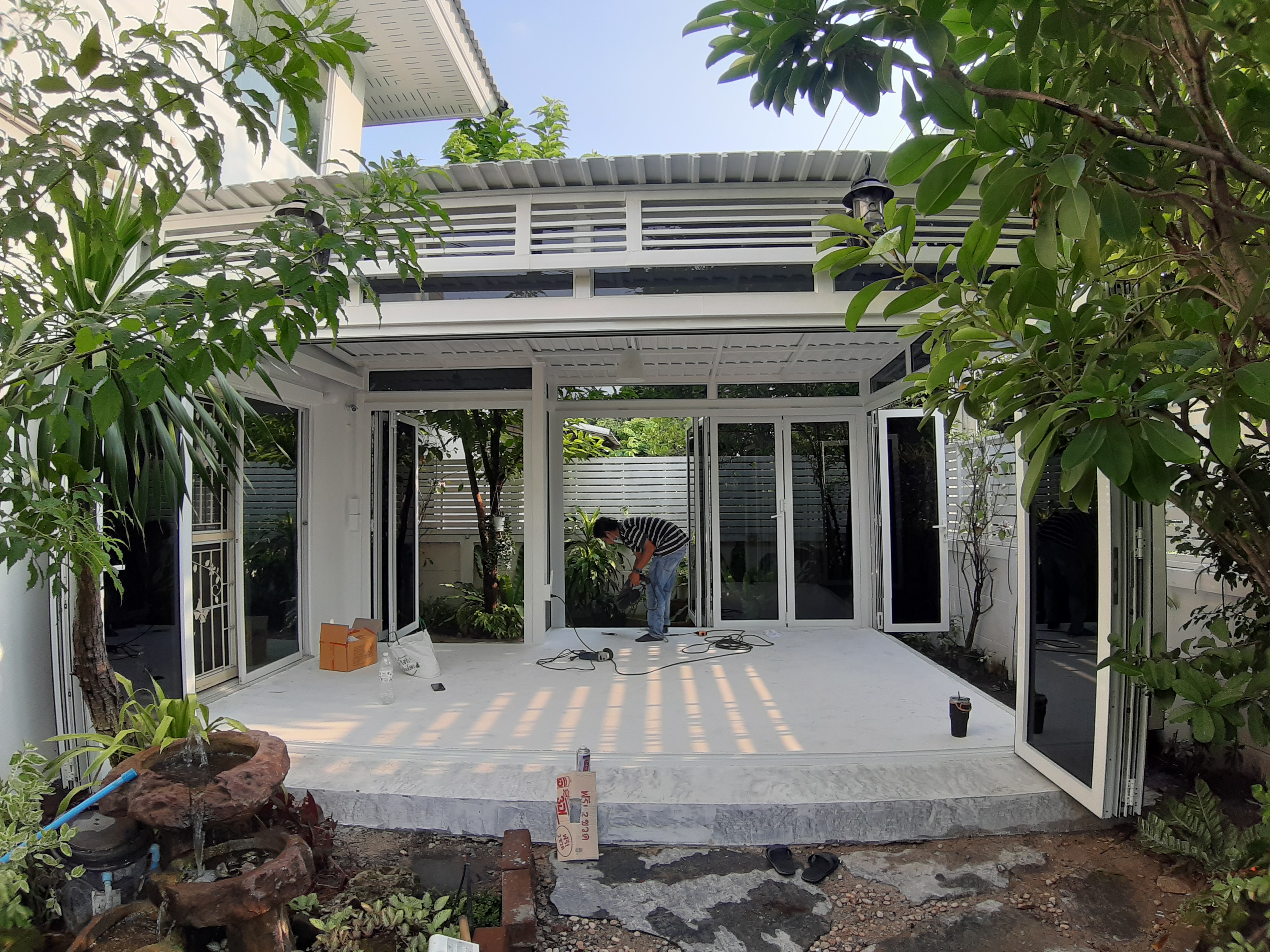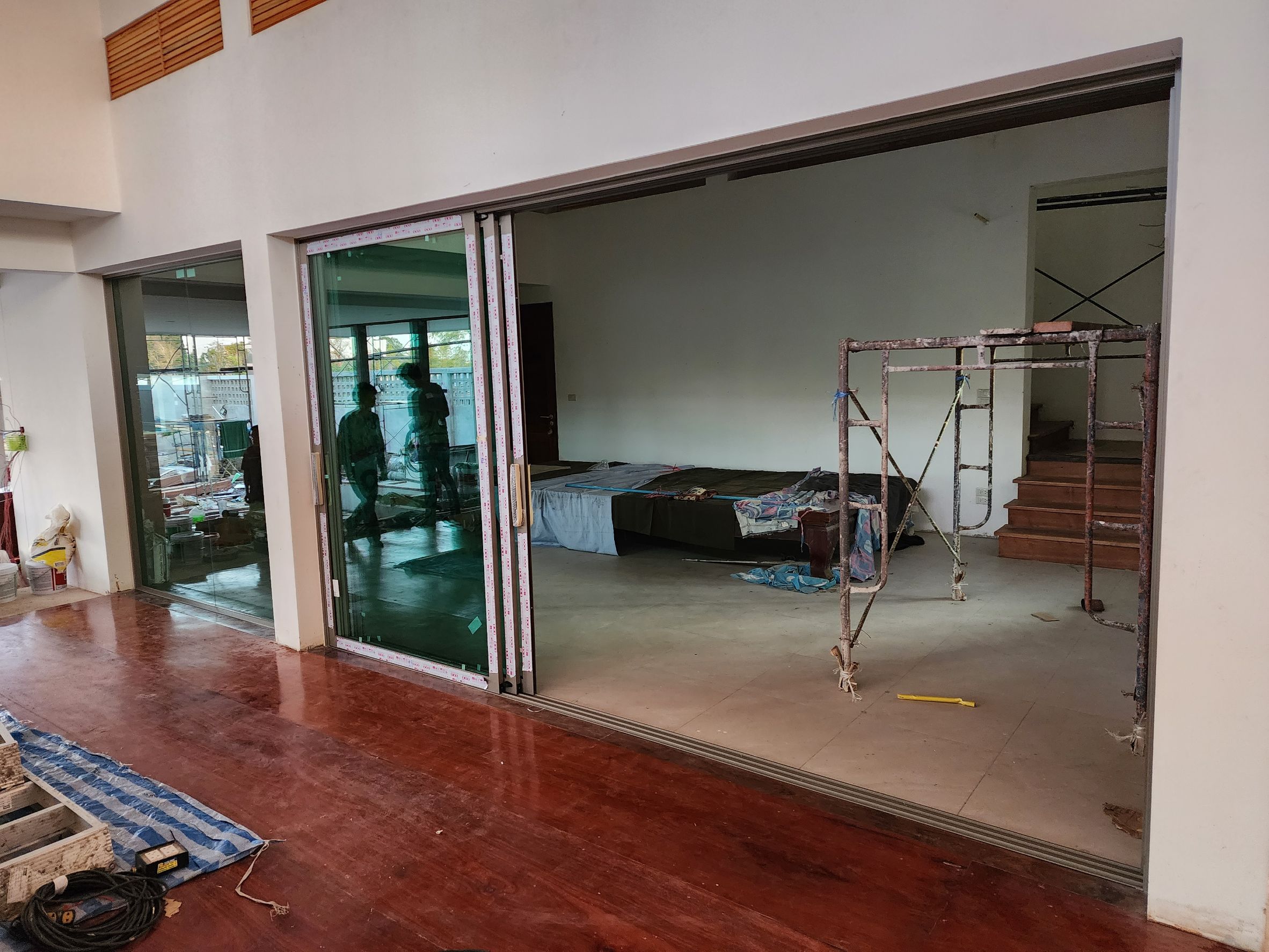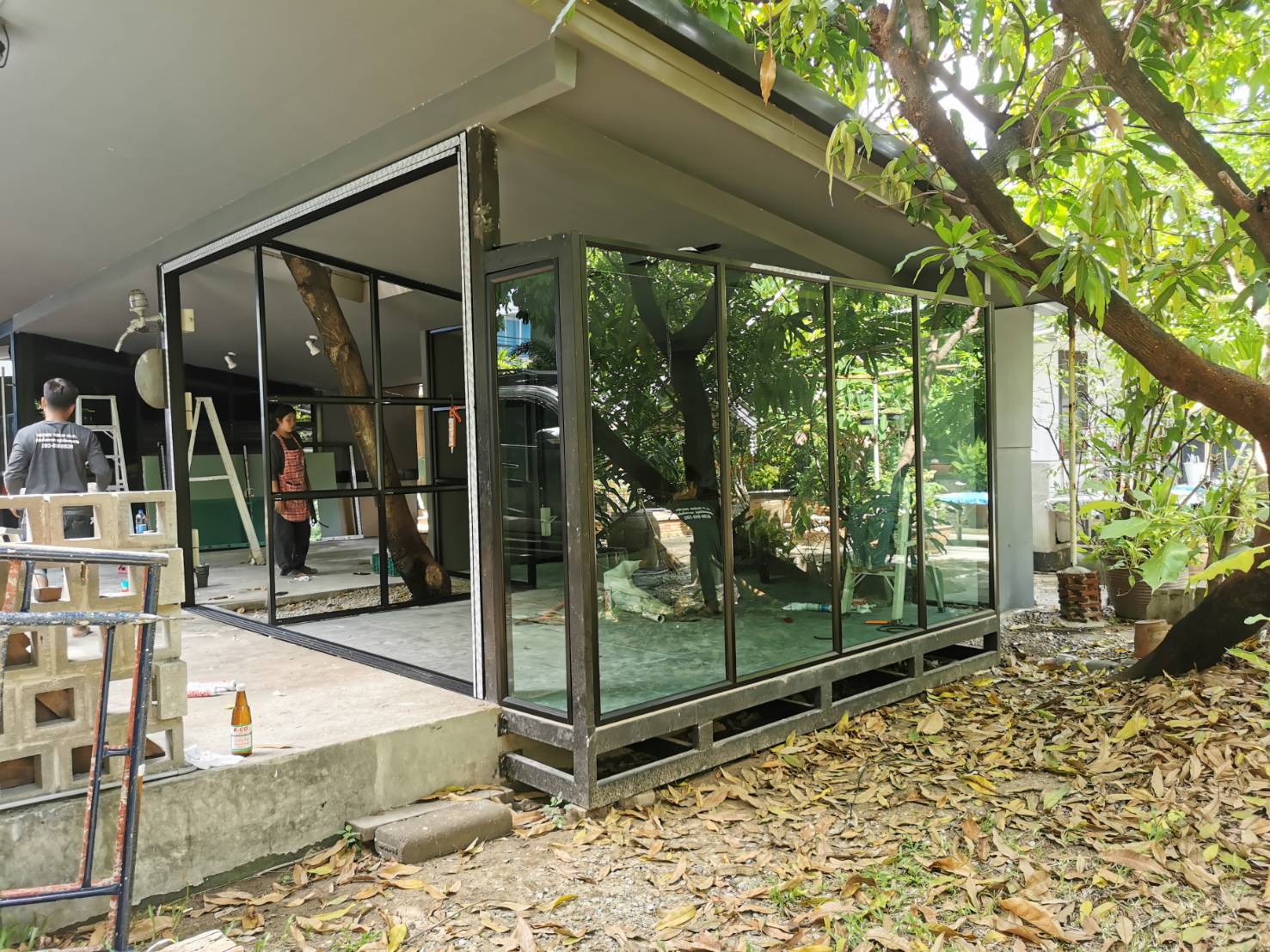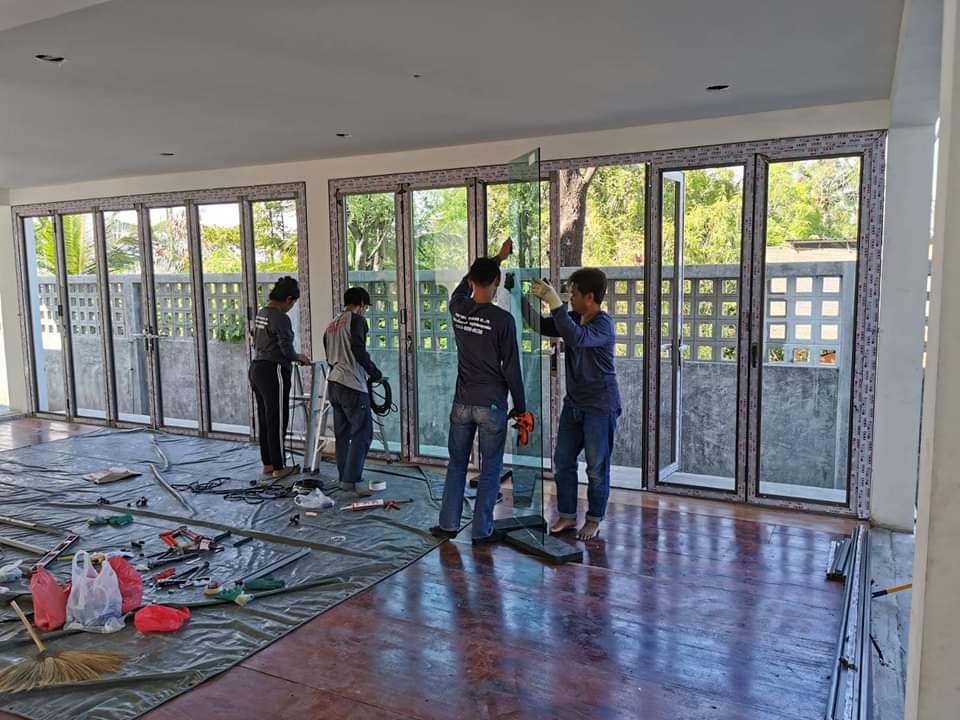 บ้านรีโนเวทใหม่ บ้านต่อเติม กั้นระเบียง กั้นห้องภายในและภายนอก อาคาร สำนักงาน ร้านอาหาร ค่าเฟ่ ราวบันไดกระจก กระจกราวกั้นตก กระจกเงา กระจกสี gllas house กระจกโค้ง บานเปลือย ประตูออโต้ ตู้โชว์ ฉากกั้นอาบน้ำ กระจกเงา กระจกตกแต่งผนัง ประตูบานเฟี้ยม บานเปิด บานสวิง บานสไลด์ บานเลื่อน ระแนงบังแดด เกล็ดอลูมิเนียมระบายอากาศ